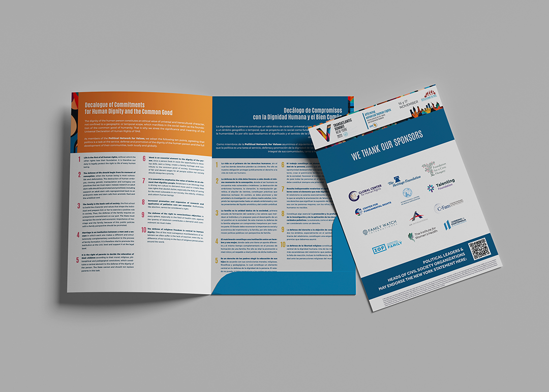Creación de Imagen TS V, La Red Política por los Valores es una plataforma transcontinental a favor de la vida, la familia y las libertades fundamentales; es un espacio de encuentro, intercambio de reflexiones y buenas prácticas. La Red y organizaciones aliadas convocaron a representantes políticos de Europa, África y América en su V Cumbre Transatlántica, que se celebra Noviembre 2023 en las Naciones Unidas, en Nueva York.