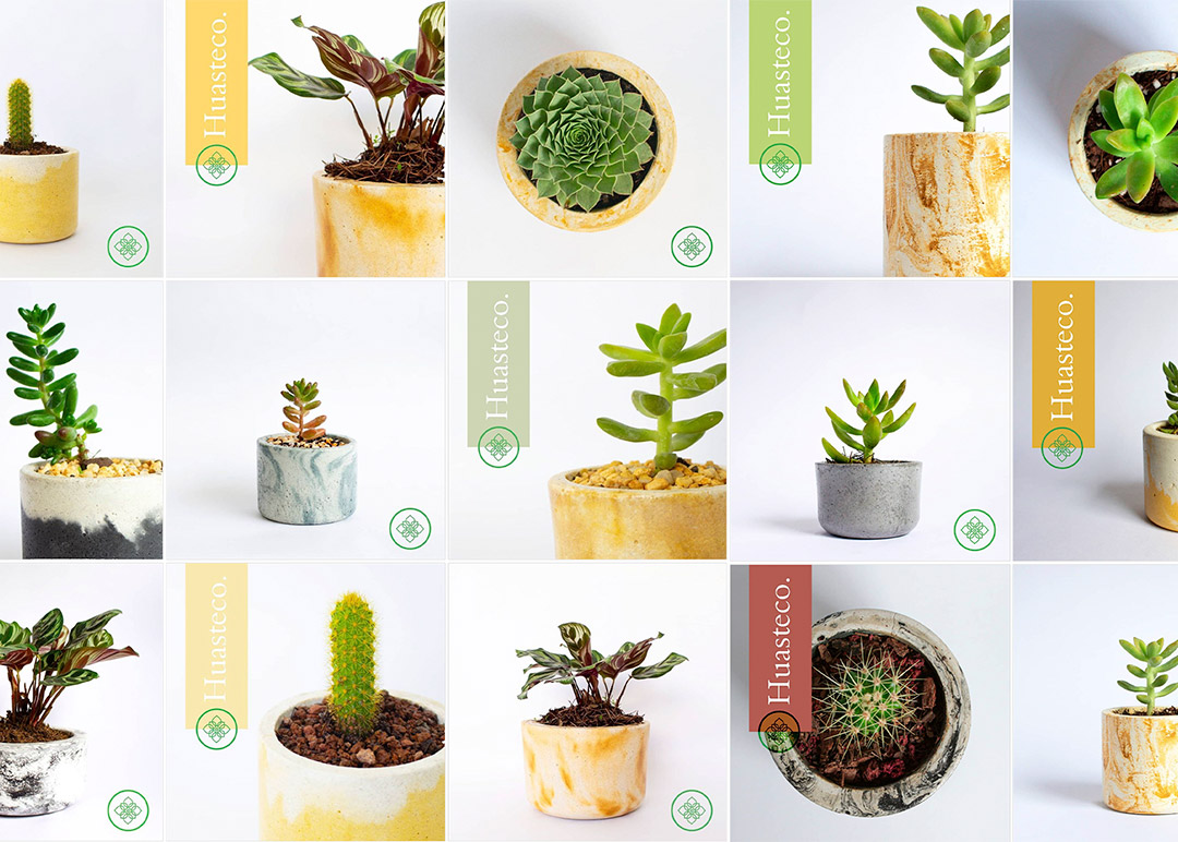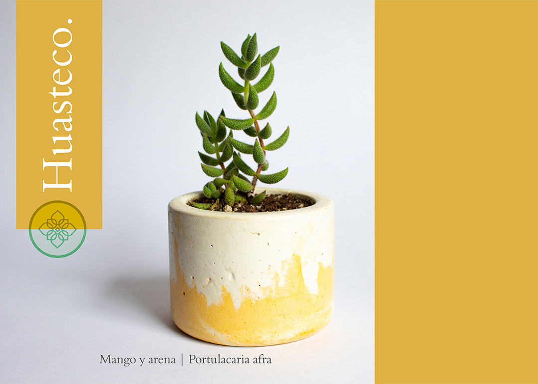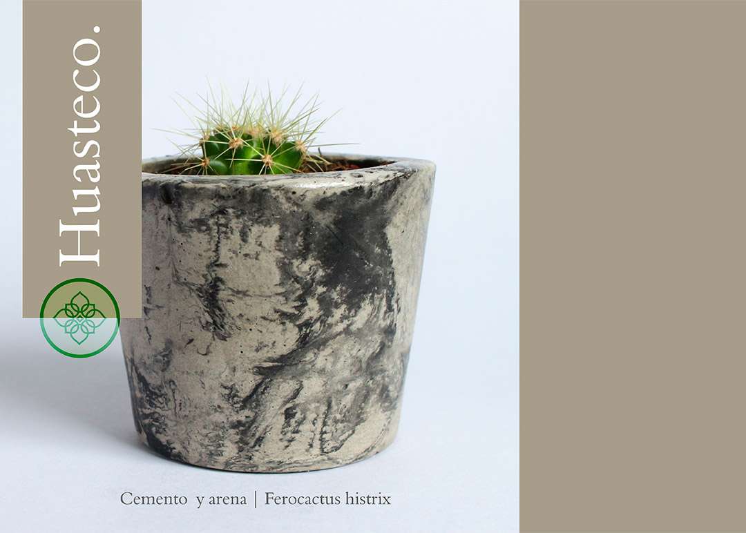 Huasteco es la marca de macetas para suculentas mexicanas, elaboradas artesanalmente desde Monterrey, México. Macetas hechas a mano con arena,cemento y pigmentos, que dan texturas y movimiento estático único. El rasgo particular de su diseño, es que los colores del branding son dados por los tonos de las macetas, la tierra, las plantas: siempre uniforme y en constante cambio a la vez. Como una suculenta…