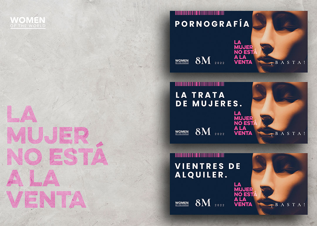 La mujer no está a la venta, Women of the World como cada año, hace una campaña el 8 de Marzo, donde manifiesta su posición en voz de las mujeres del mundo. Desde una perspectiva femenina, donde enaltecen las complementariedad de hombre y mujer, celebrando las igualdades y diferencias. Esta campaña en particular hace eco a la materialización que se le ha dado a la mujer, con la pornografía, los vientres de alquiler y la trata de mujeres.
